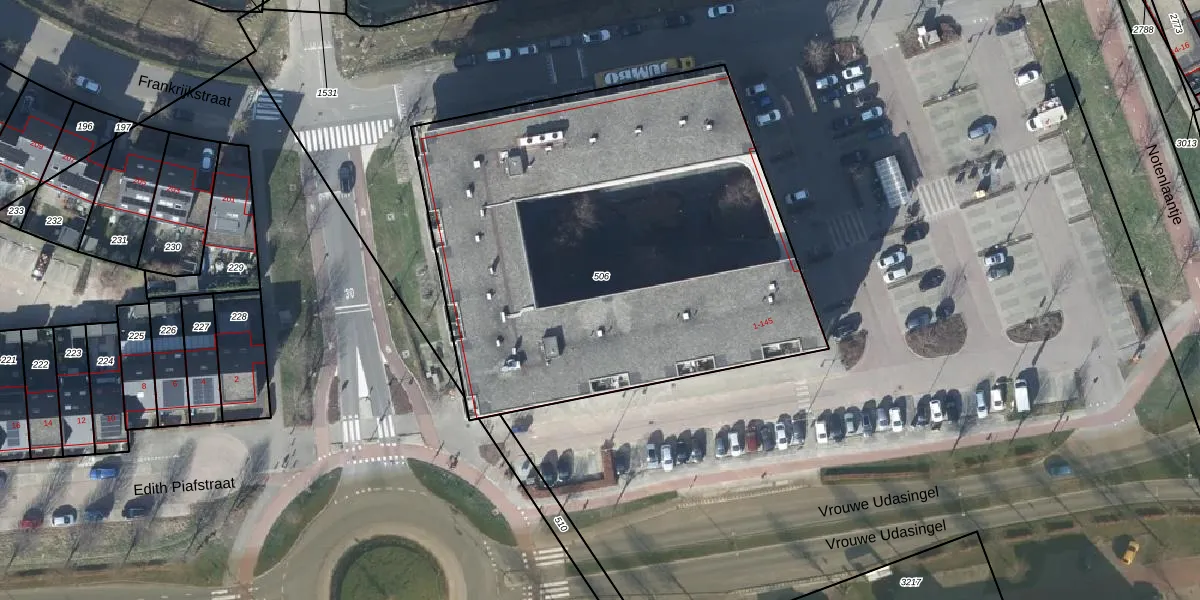 Het perceel waarop Frankrijkstraat 79 staat heeft een oppervlakte van 2855 m². Dit is een zeer groot perceel. De perceeloppervlakte wordt geregistreerd door het Kadaster. Gedetailleerde informatie over de maten van dit perceel kunt u vinden in het rapport Kadastrale kaart met maatvoering van Frankrijkstraat 79.