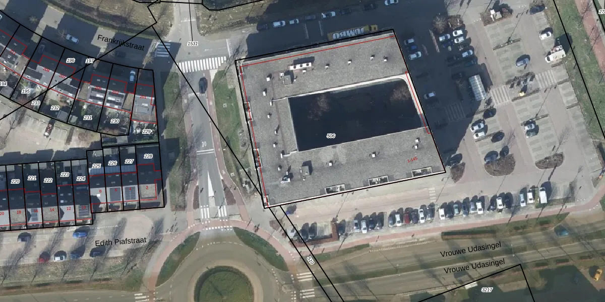 Het perceel waarop Frankrijkstraat 83 staat heeft een oppervlakte van 2855 m². Dit is een zeer groot perceel. De perceeloppervlakte wordt geregistreerd door het Kadaster. Gedetailleerde informatie over de maten van dit perceel kunt u vinden in het rapport Kadastrale kaart met maatvoering van Frankrijkstraat 83.