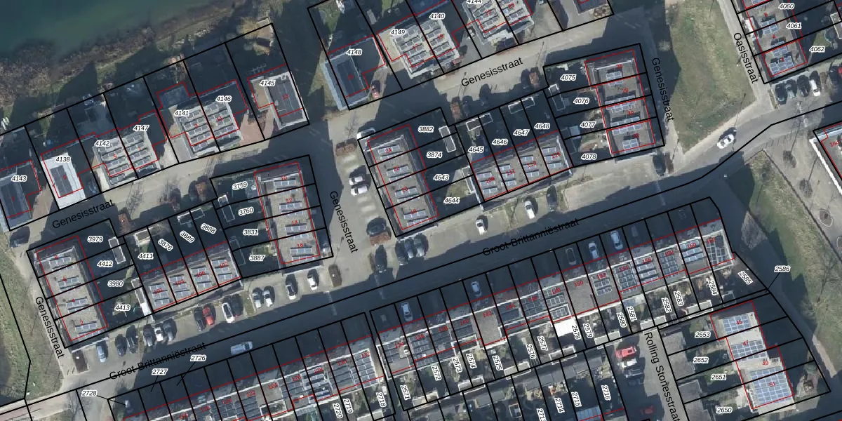 Gebruik de zoekbalk of klik op een perceel voor informatie over de adressen binnen dit perceel.