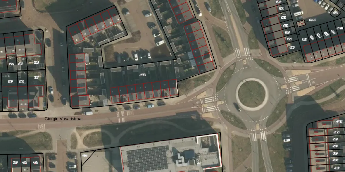 Het perceel waarop Giorgio Vasaristraat 21 staat heeft een oppervlakte van 3335 m². Dit is een zeer groot perceel. De perceeloppervlakte wordt geregistreerd door het Kadaster. Gedetailleerde informatie over de maten van dit perceel kunt u vinden in het rapport Kadastrale kaart met maatvoering van Giorgio Vasaristraat 21.