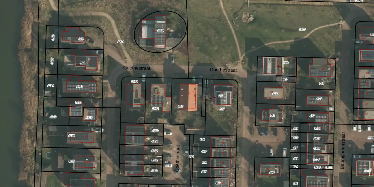 Het perceel waarop Goethestraat 20 staat heeft een oppervlakte van 471 m². Dit is een groot perceel. De perceeloppervlakte wordt geregistreerd door het Kadaster. Gedetailleerde informatie over de maten van dit perceel kunt u vinden in het rapport Kadastrale kaart met maatvoering van Goethestraat 20.