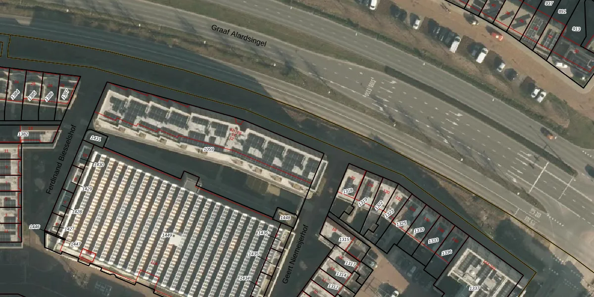 Het perceel waarop Graaf Alardsingel 126 staat heeft een oppervlakte van 1825 m². Dit is een zeer groot perceel. De perceeloppervlakte wordt geregistreerd door het Kadaster. Gedetailleerde informatie over de maten van dit perceel kunt u vinden in het rapport Kadastrale kaart met maatvoering van Graaf Alardsingel 126.