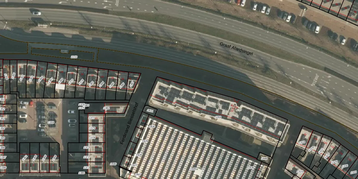 Het perceel waarop Graaf Alardsingel 46 staat heeft een oppervlakte van 1825 m². Dit is een zeer groot perceel. De perceeloppervlakte wordt geregistreerd door het Kadaster. Gedetailleerde informatie over de maten van dit perceel kunt u vinden in het rapport Kadastrale kaart met maatvoering van Graaf Alardsingel 46.