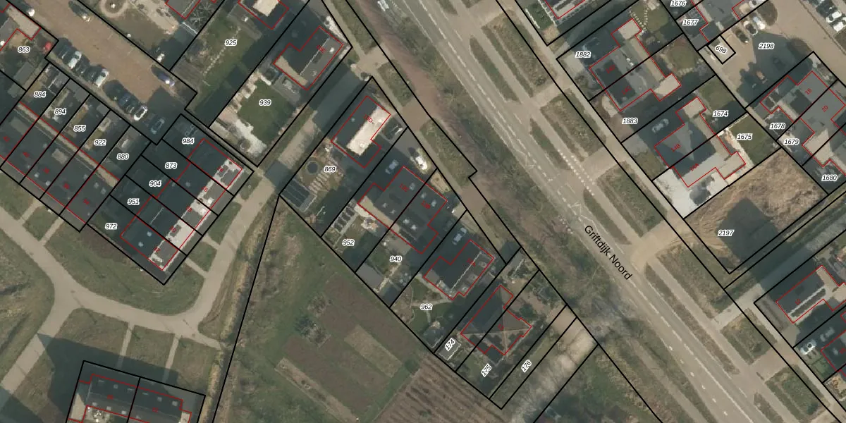 Het perceel waarop Griftdijk Noord 13-B staat heeft een oppervlakte van 354 m². Dit is een groot perceel. De perceeloppervlakte wordt geregistreerd door het Kadaster. Gedetailleerde informatie over de maten van dit perceel kunt u vinden in het rapport Kadastrale kaart met maatvoering van Griftdijk Noord 13-B.