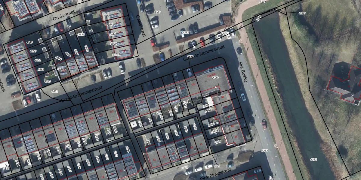Groot-Brittanniëstraat 224 is gelegen op kadastraal perceel LEN00A2562. Deze kadastrale aanduiding is uniek en wordt gebruikt door het Kadaster om eigendomsrechten en andere zakelijke rechten vast te leggen. Het perceel maakt onderdeel uit van de kadastrale gemeente Lent.