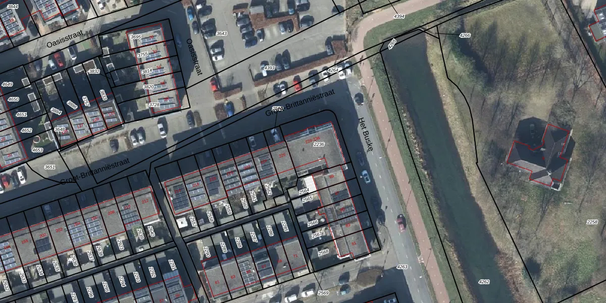 Groot-Brittanniëstraat 236 is gelegen op kadastraal perceel LEN00A2236. Deze kadastrale aanduiding is uniek en wordt gebruikt door het Kadaster om eigendomsrechten en andere zakelijke rechten vast te leggen. Het perceel maakt onderdeel uit van de kadastrale gemeente Lent.
