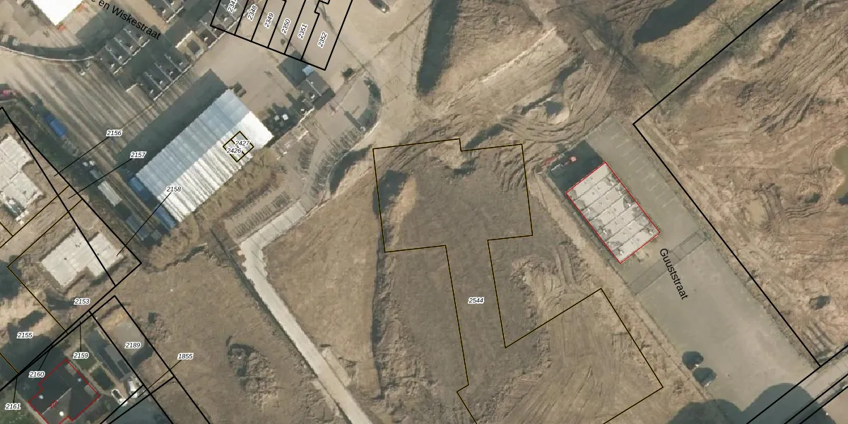 Het perceel waarop Guuststraat 169 staat heeft een oppervlakte van 2243 m². Dit is een zeer groot perceel. De perceeloppervlakte wordt geregistreerd door het Kadaster. Gedetailleerde informatie over de maten van dit perceel kunt u vinden in het rapport Kadastrale kaart met maatvoering van Guuststraat 169.