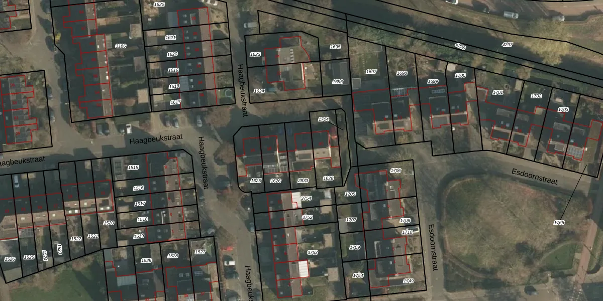 Haagbeukstraat 18 is gelegen op kadastraal perceel LEN00A2833. Deze kadastrale aanduiding is uniek en wordt gebruikt door het Kadaster om eigendomsrechten en andere zakelijke rechten vast te leggen. Het perceel maakt onderdeel uit van de kadastrale gemeente Lent.