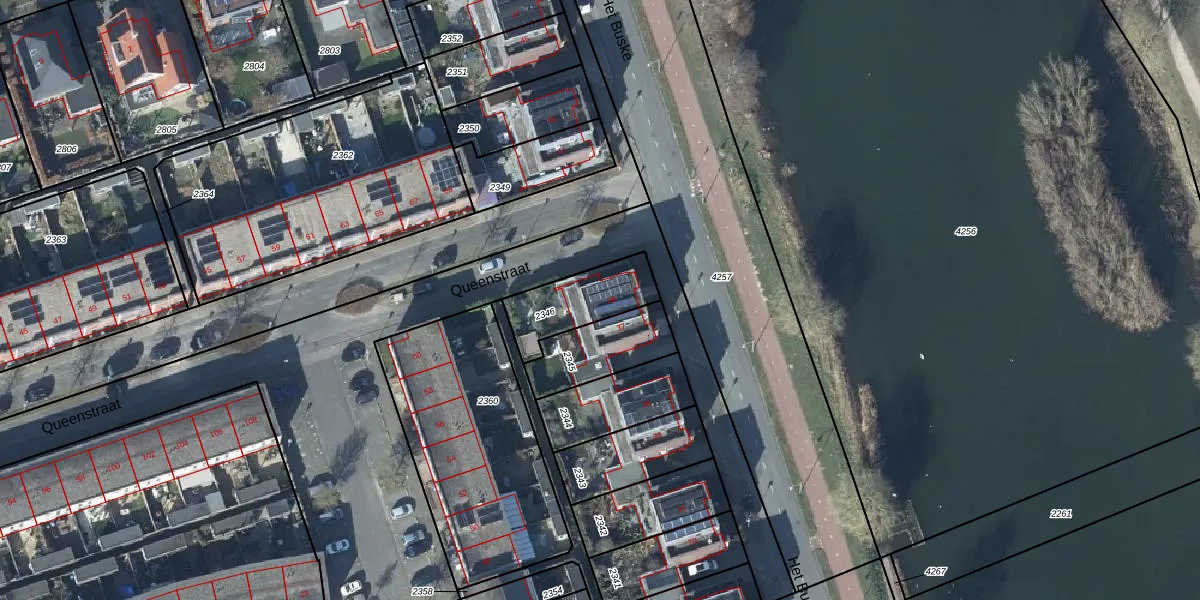 Gebruik de zoekbalk of klik op een perceel voor informatie over de adressen binnen dit perceel.