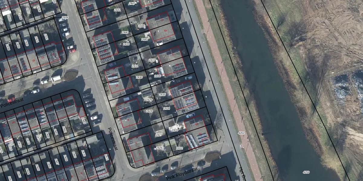 Gebruik de zoekbalk of klik op een perceel voor informatie over de adressen binnen dit perceel.