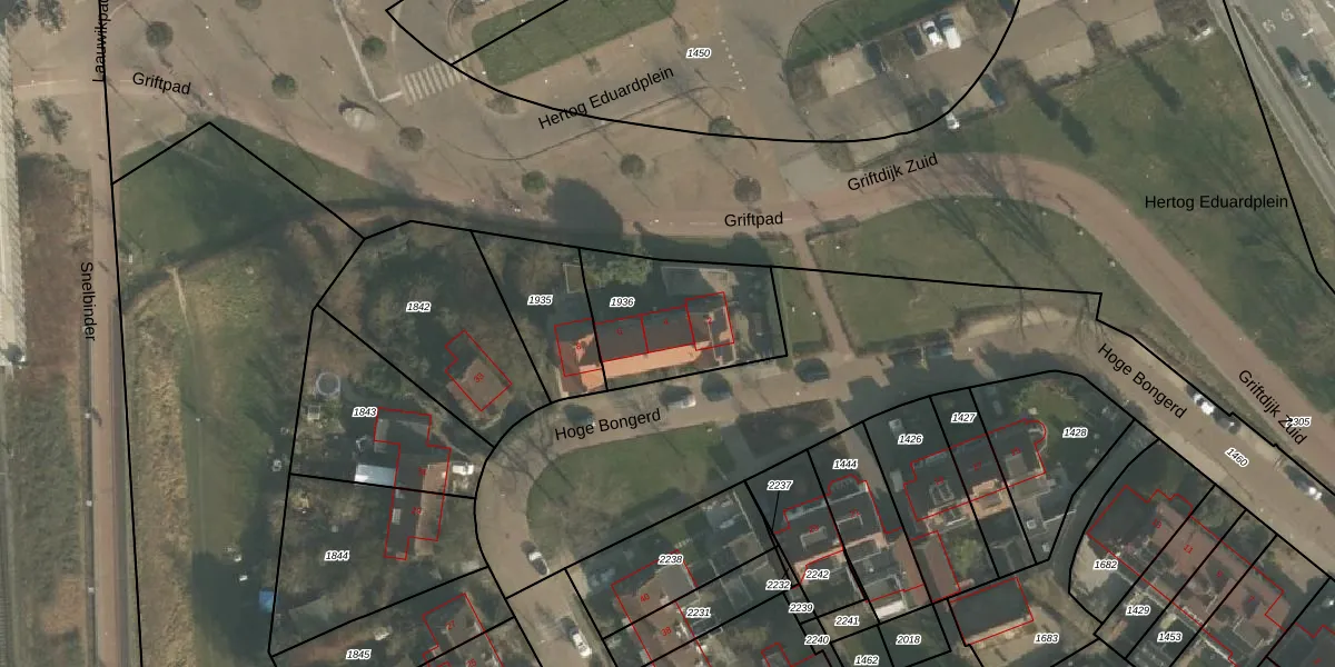 Het perceel waarop Hoge Bongerd 4 staat heeft een oppervlakte van 450 m². Dit is een groot perceel. De perceeloppervlakte wordt geregistreerd door het Kadaster. Gedetailleerde informatie over de maten van dit perceel kunt u vinden in het rapport Kadastrale kaart met maatvoering van Hoge Bongerd 4.