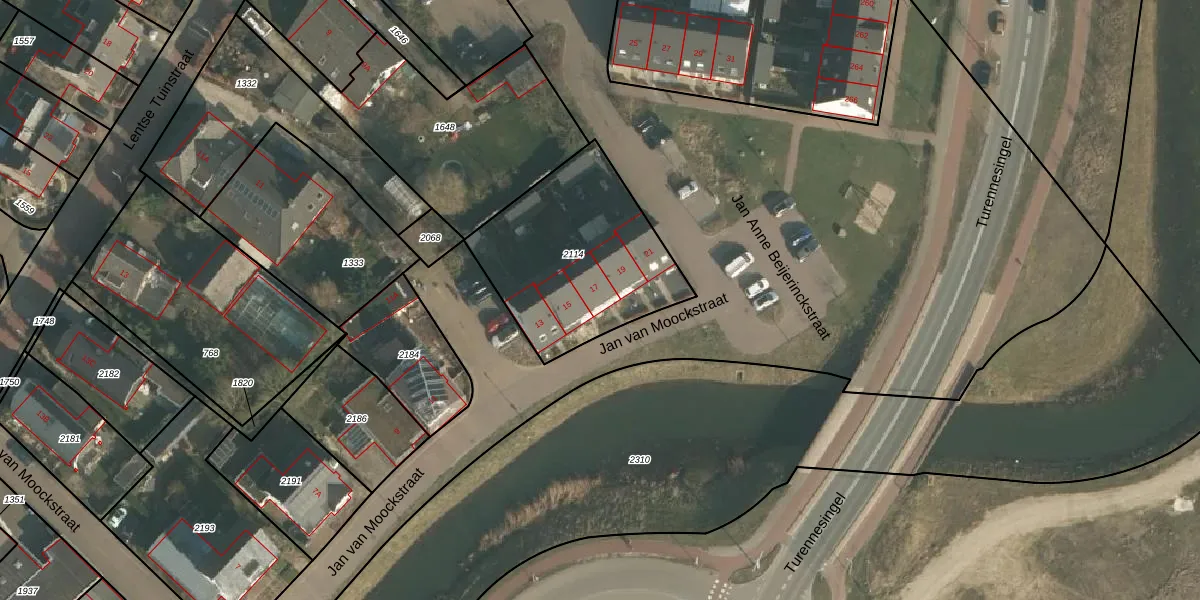 Jan van Moockstraat 17 is gelegen op kadastraal perceel LEN00B2114. Deze kadastrale aanduiding is uniek en wordt gebruikt door het Kadaster om eigendomsrechten en andere zakelijke rechten vast te leggen. Het perceel maakt onderdeel uit van de kadastrale gemeente Lent.