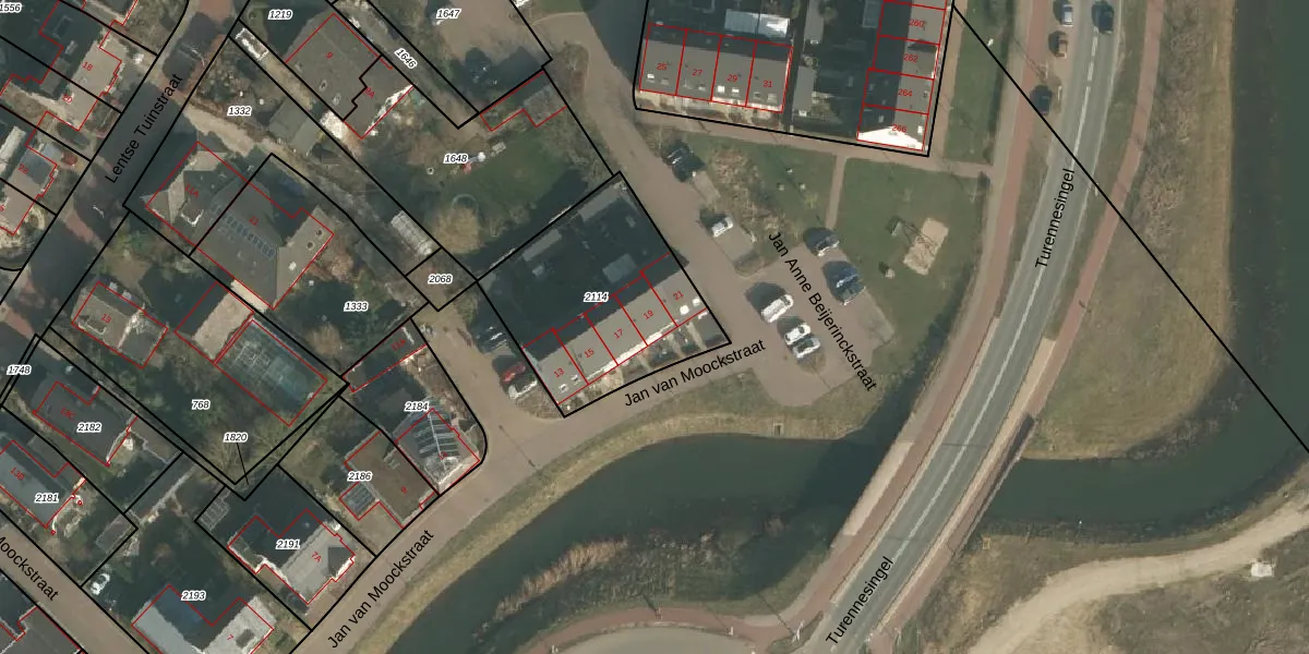 Jan van Moockstraat 19 is gelegen op kadastraal perceel LEN00B2114. Deze kadastrale aanduiding is uniek en wordt gebruikt door het Kadaster om eigendomsrechten en andere zakelijke rechten vast te leggen. Het perceel maakt onderdeel uit van de kadastrale gemeente Lent.