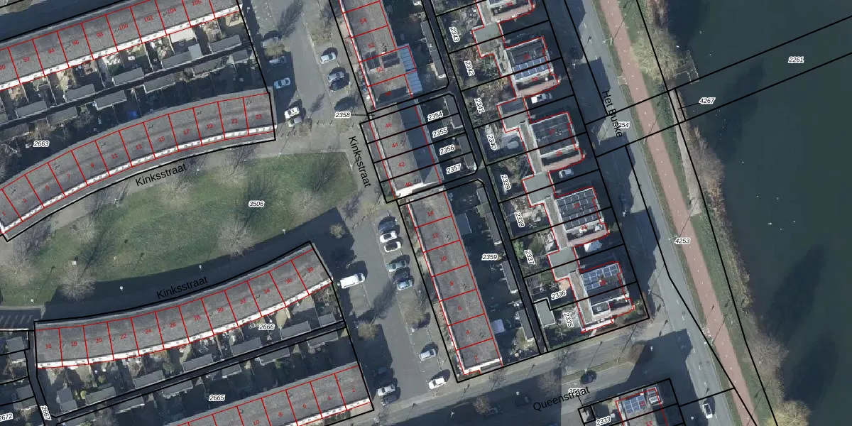 Het perceel waarop Kinksstraat 14 staat heeft een oppervlakte van 895 m². Dit is een groot perceel. De perceeloppervlakte wordt geregistreerd door het Kadaster. Gedetailleerde informatie over de maten van dit perceel kunt u vinden in het rapport Kadastrale kaart met maatvoering van Kinksstraat 14.