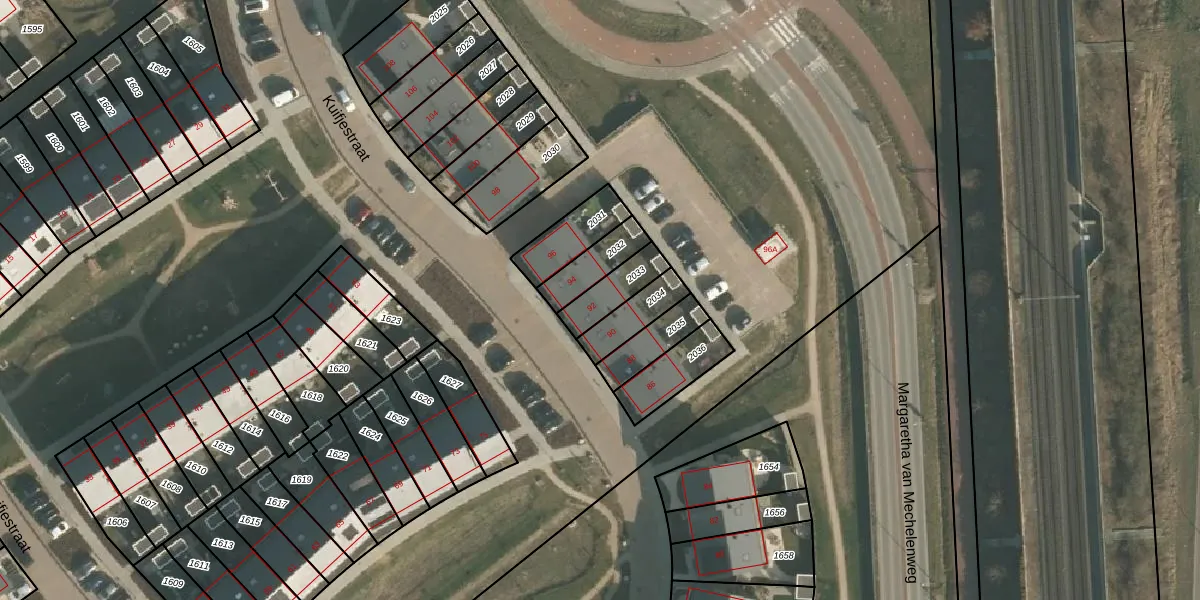 Kuifjestraat 92 is gelegen op kadastraal perceel NMG00F2033. Deze kadastrale aanduiding is uniek en wordt gebruikt door het Kadaster om eigendomsrechten en andere zakelijke rechten vast te leggen. Het perceel maakt onderdeel uit van de kadastrale gemeente Nijmegen.