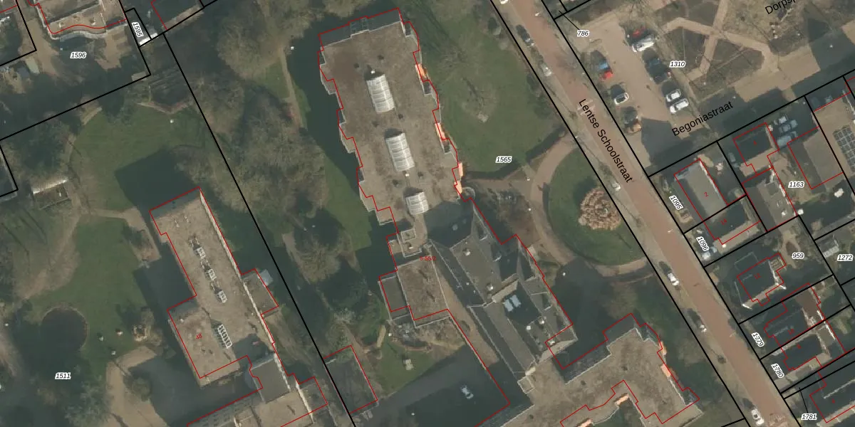 Lentse Schoolstraat 21 is gelegen op kadastraal perceel LEN00B1565. Deze kadastrale aanduiding is uniek en wordt gebruikt door het Kadaster om eigendomsrechten en andere zakelijke rechten vast te leggen. Het perceel maakt onderdeel uit van de kadastrale gemeente Lent.
