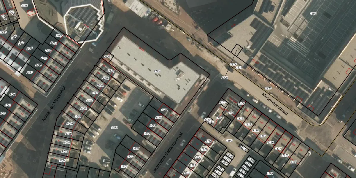Het perceel waarop Moormannstraat 100 staat heeft een oppervlakte van 1305 m². Dit is een zeer groot perceel. De perceeloppervlakte wordt geregistreerd door het Kadaster. Gedetailleerde informatie over de maten van dit perceel kunt u vinden in het rapport Kadastrale kaart met maatvoering van Moormannstraat 100.