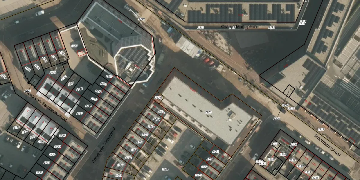Het perceel waarop Moormannstraat 12 staat heeft een oppervlakte van 1310 m². Dit is een zeer groot perceel. De perceeloppervlakte wordt geregistreerd door het Kadaster. Gedetailleerde informatie over de maten van dit perceel kunt u vinden in het rapport Kadastrale kaart met maatvoering van Moormannstraat 12.