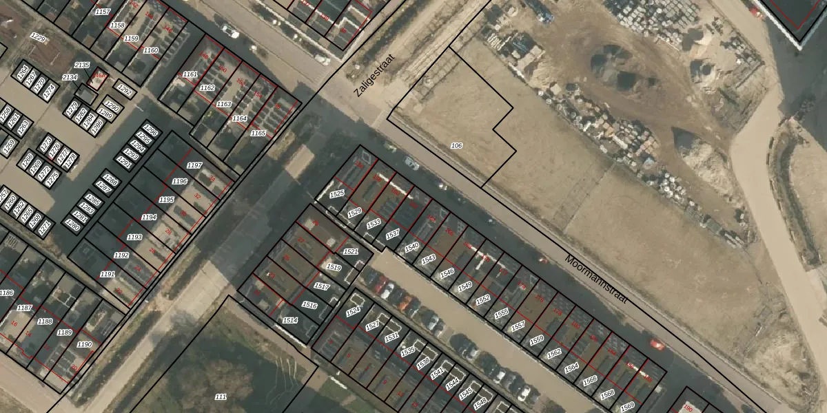 Gebruik de zoekbalk of klik op een perceel voor informatie over de adressen binnen dit perceel.