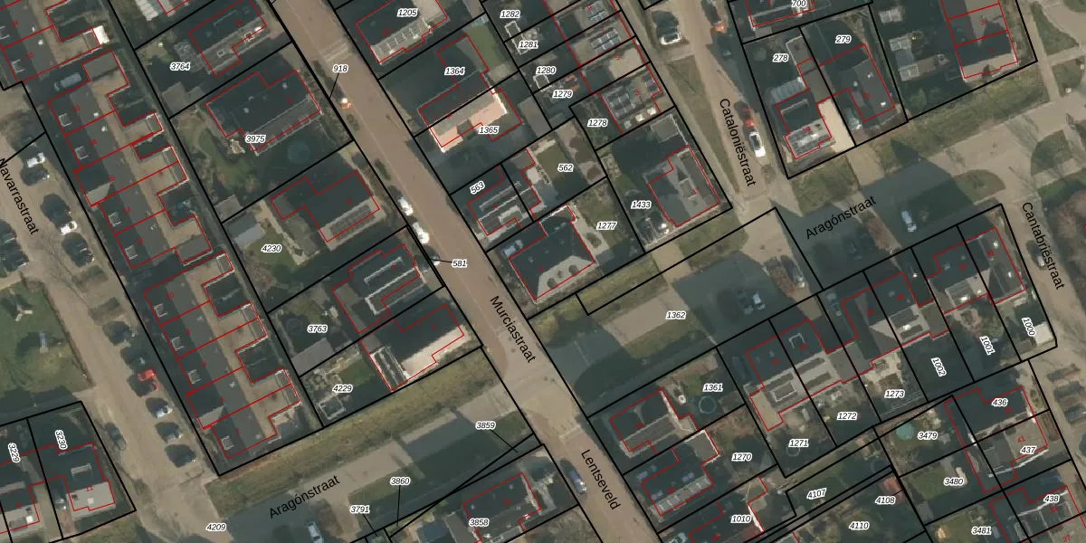 Het perceel waarop Murciastraat 2 staat heeft een oppervlakte van 395 m². Dit is een groot perceel. De perceeloppervlakte wordt geregistreerd door het Kadaster. Gedetailleerde informatie over de maten van dit perceel kunt u vinden in het rapport Kadastrale kaart met maatvoering van Murciastraat 2.