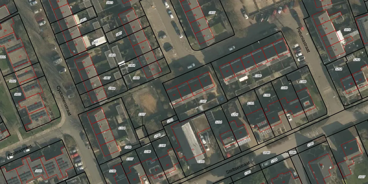 Petuniastraat 21 is gelegen op kadastraal perceel LEN00B1187. Deze kadastrale aanduiding is uniek en wordt gebruikt door het Kadaster om eigendomsrechten en andere zakelijke rechten vast te leggen. Het perceel maakt onderdeel uit van de kadastrale gemeente Lent.