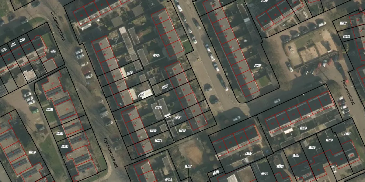 Petuniastraat 31 is gelegen op kadastraal perceel LEN00B1953. Deze kadastrale aanduiding is uniek en wordt gebruikt door het Kadaster om eigendomsrechten en andere zakelijke rechten vast te leggen. Het perceel maakt onderdeel uit van de kadastrale gemeente Lent.