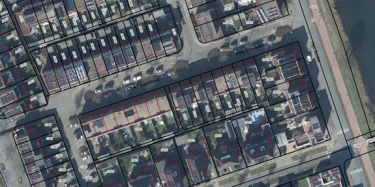 Pink Floydstraat 13 is gelegen op kadastraal perceel LEN00A2394. Deze kadastrale aanduiding is uniek en wordt gebruikt door het Kadaster om eigendomsrechten en andere zakelijke rechten vast te leggen. Het perceel maakt onderdeel uit van de kadastrale gemeente Lent.