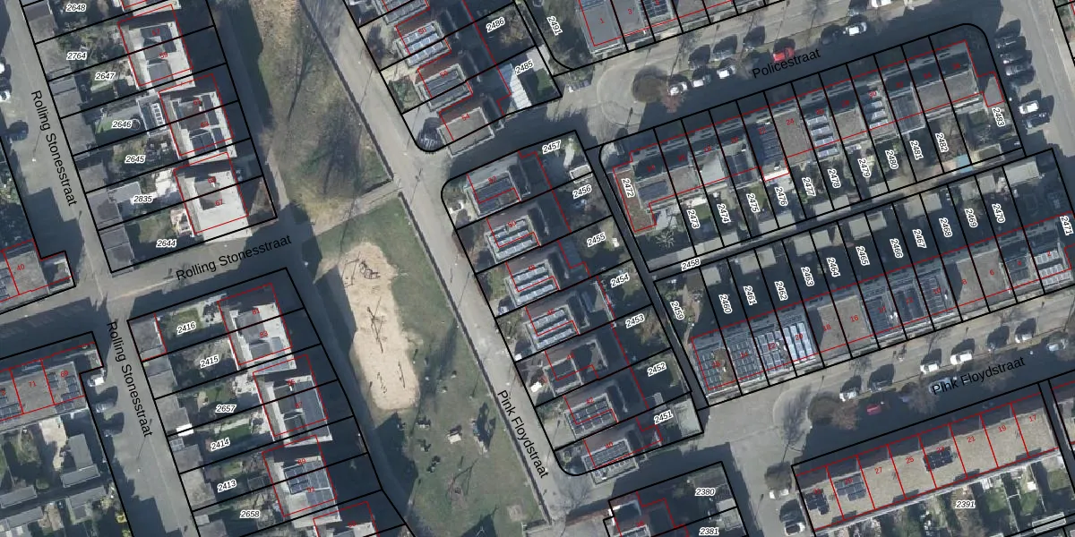 Gebruik de zoekbalk of klik op een perceel voor informatie over de adressen binnen dit perceel.