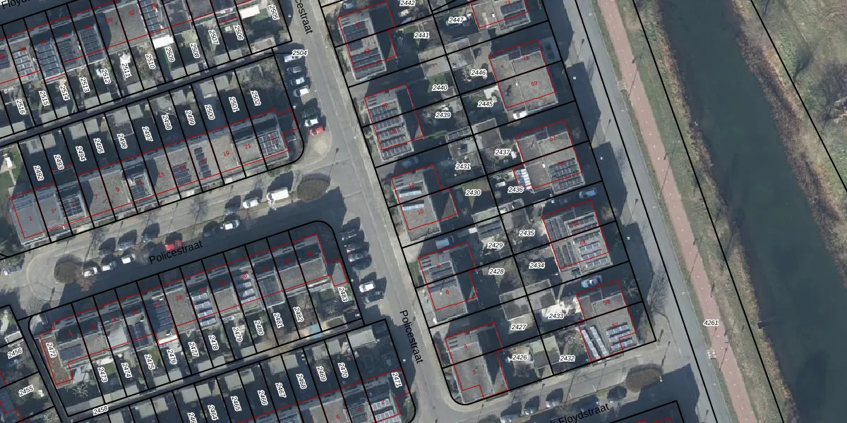 Gebruik de zoekbalk of klik op een perceel voor informatie over de adressen binnen dit perceel.