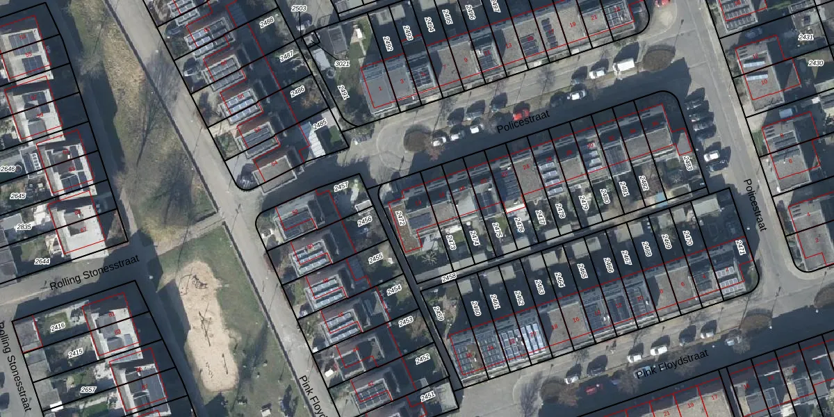 Gebruik de zoekbalk of klik op een perceel voor informatie over de adressen binnen dit perceel.