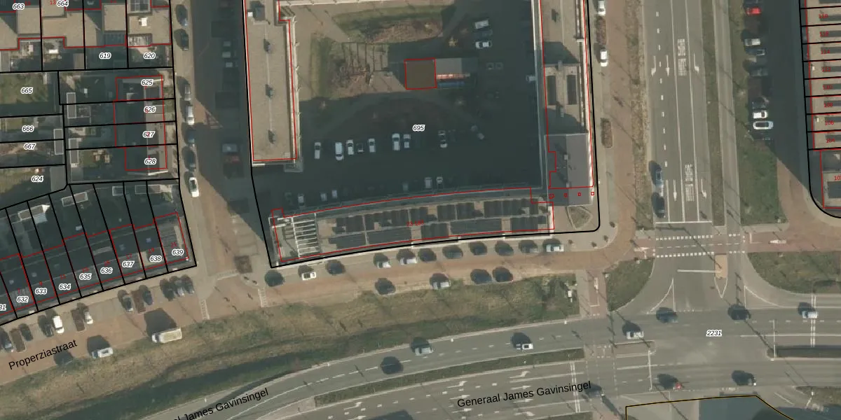 Het perceel waarop het adres ligt is NMG00-F-695. De afkorting 'NMG00' staat voor kadastrale gemeente Nijmegen. De oppervlakte van het perceel is 5850 m². Dat is groter dan gemiddeld in Nijmegen, waar de gemiddelde perceeloppervlakte op 1201,59 m² ligt. Het kleinste perceel in de kadastrale gemeente is 0 m² groot. De grootste perceeloppervlakte is 45,2 ha. Op het perceel zijn 126 adressen aanwezig. De huidige grenzen van het perceel zijn digitaal in de Basisregistratie Kadaster (BRK) geregistreerd op 24-11-2022.