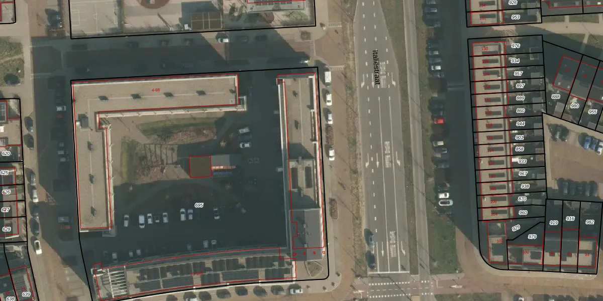 Het perceel waarop het adres ligt is NMG00-F-695. De afkorting 'NMG00' staat voor kadastrale gemeente Nijmegen. De oppervlakte van het perceel is 5850 m². Dat is groter dan gemiddeld in Nijmegen, waar de gemiddelde perceeloppervlakte op 1201,59 m² ligt. Het kleinste perceel in de kadastrale gemeente is 0 m² groot. De grootste perceeloppervlakte is 45,2 ha. Op het perceel liggen in totaal 126 adressen. In de Basisregistratie Kadaster (BRK) werden de grenzen van het perceel geregistreerd op 24-11-2022.