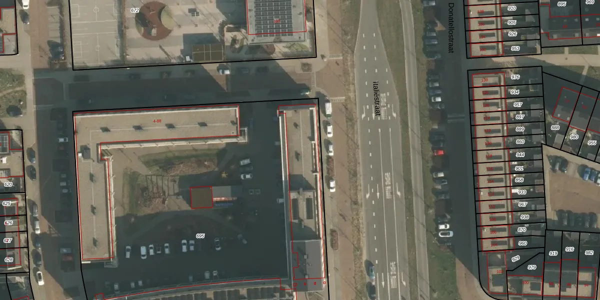 Het perceel waarop het adres ligt is NMG00-F-695. De afkorting 'NMG00' staat voor kadastrale gemeente Nijmegen. De oppervlakte van het perceel is 5850 m². Dat is groter dan gemiddeld in Nijmegen, waar de gemiddelde perceeloppervlakte op 1201,59 m² ligt. Het kleinste perceel in de kadastrale gemeente is 0 m² groot. De grootste perceeloppervlakte is 45,2 ha. Op het perceel liggen in totaal 126 adressen. De laatste wijziging in het de Basisregistratie Kadaster (BRK) was op 24-11-2022.