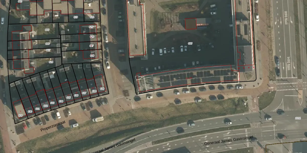 Het perceel waarop Properziastraat 133 staat heeft een oppervlakte van 5850 m². Dit is een zeer groot perceel. De perceeloppervlakte wordt geregistreerd door het Kadaster. Gedetailleerde informatie over de maten van dit perceel kunt u vinden in het rapport Kadastrale kaart met maatvoering van Properziastraat 133.