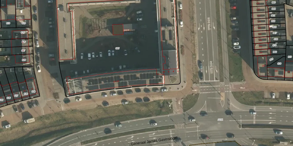 Het perceel waarop het adres ligt is NMG00-F-695. De afkorting 'NMG00' staat voor kadastrale gemeente Nijmegen. De oppervlakte van het perceel is 5850 m². Dat is groter dan gemiddeld in Nijmegen, waar de gemiddelde perceeloppervlakte op 1204,86 m² ligt. Het kleinste perceel in de kadastrale gemeente is 0 m² groot. De grootste perceeloppervlakte is 45,2 ha. Er zijn 126 adressen aanwezig op het perceel. De huidige grenzen van het perceel zijn digitaal in de Basisregistratie Kadaster (BRK) geregistreerd op 24-11-2022.