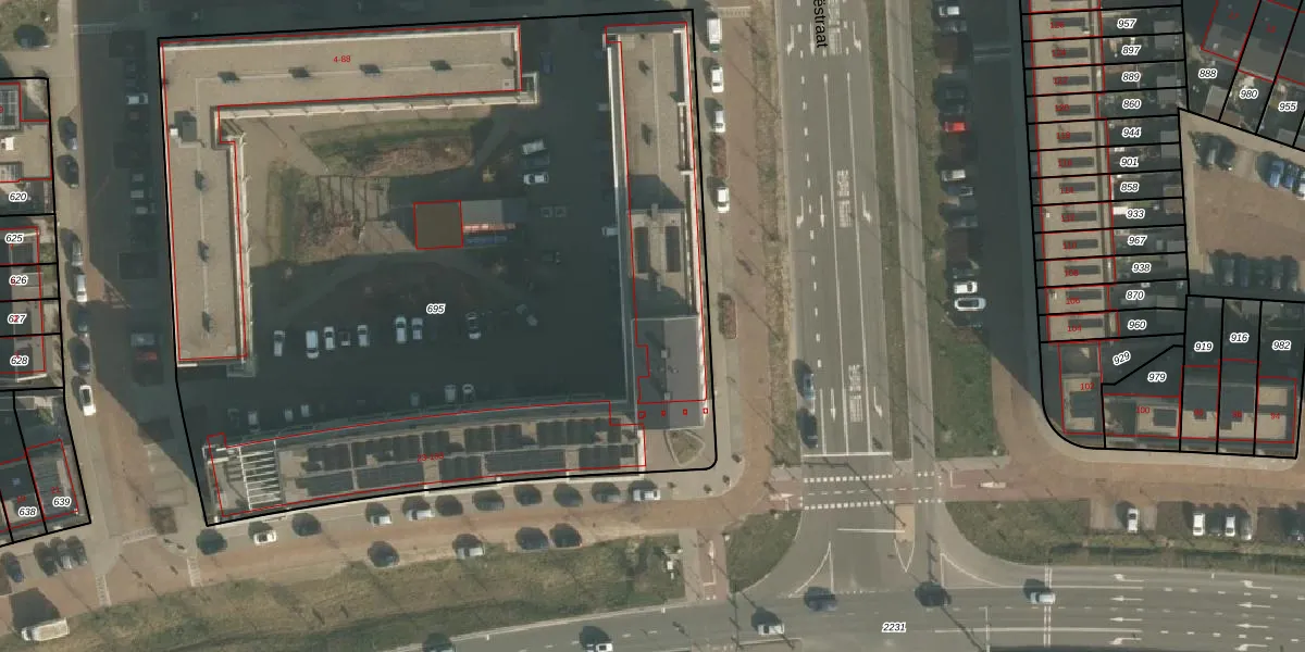 Het perceel waarop het adres ligt is NMG00-F-695. De afkorting 'NMG00' staat voor kadastrale gemeente Nijmegen. De oppervlakte van het perceel is 5850 m². Dat is groter dan gemiddeld in Nijmegen, waar de gemiddelde perceeloppervlakte op 1201,59 m² ligt. Het kleinste perceel in de kadastrale gemeente is 0 m² groot. De grootste perceeloppervlakte is 45,2 ha. Er zijn 126 adressen aanwezig op het perceel. De huidige grenzen van het perceel zijn digitaal in de Basisregistratie Kadaster (BRK) geregistreerd op 24-11-2022.