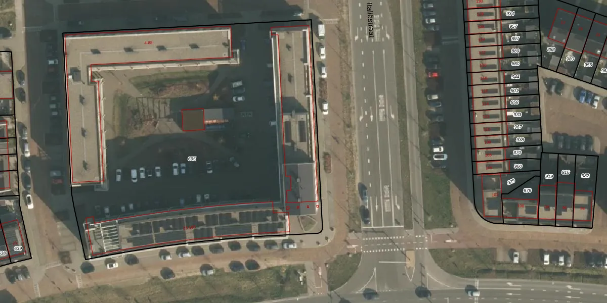 Het perceel waarop Properziastraat 75 staat heeft een oppervlakte van 5850 m². Dit is een zeer groot perceel. De perceeloppervlakte wordt geregistreerd door het Kadaster. Gedetailleerde informatie over de maten van dit perceel kunt u vinden in het rapport Kadastrale kaart met maatvoering van Properziastraat 75.