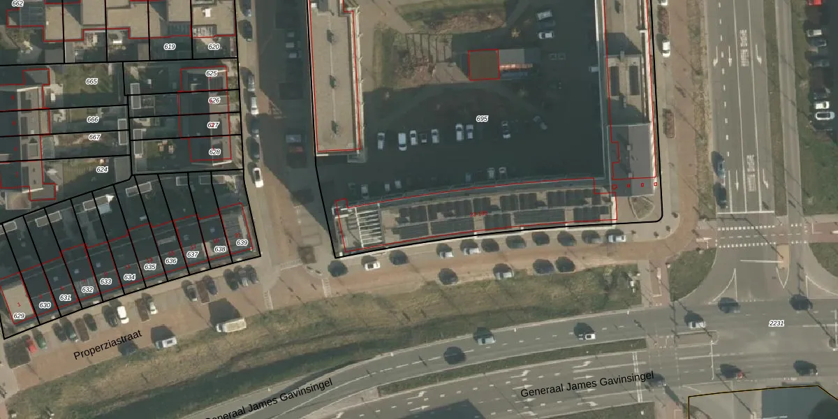 Het perceel waarop Properziastraat 97 staat heeft een oppervlakte van 5850 m². Dit is een zeer groot perceel. De perceeloppervlakte wordt geregistreerd door het Kadaster. Gedetailleerde informatie over de maten van dit perceel kunt u vinden in het rapport Kadastrale kaart met maatvoering van Properziastraat 97.