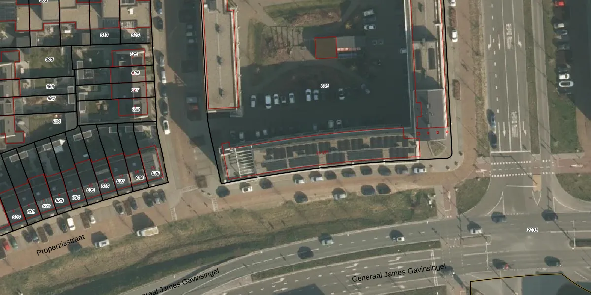 Het perceel waarop Properziastraat 99 staat heeft een oppervlakte van 5850 m². Dit is een zeer groot perceel. De perceeloppervlakte wordt geregistreerd door het Kadaster. Gedetailleerde informatie over de maten van dit perceel kunt u vinden in het rapport Kadastrale kaart met maatvoering van Properziastraat 99.