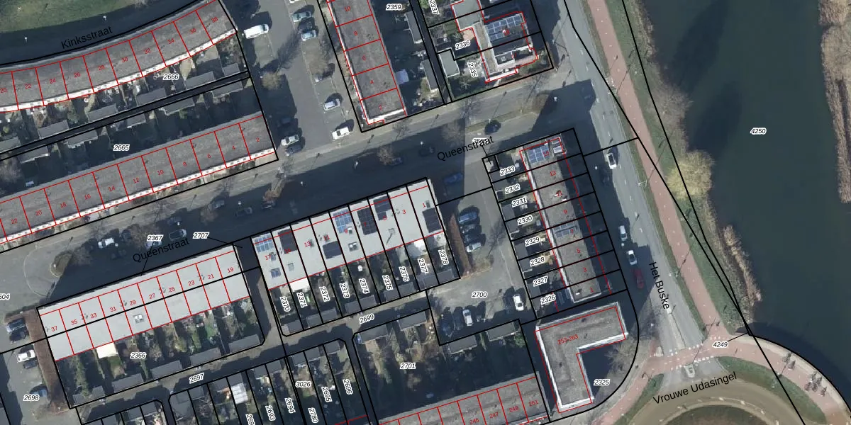 Queenstraat 1 is gelegen op kadastraal perceel LEN00A2378. Deze kadastrale aanduiding is uniek en wordt gebruikt door het Kadaster om eigendomsrechten en andere zakelijke rechten vast te leggen. Het perceel maakt onderdeel uit van de kadastrale gemeente Lent.