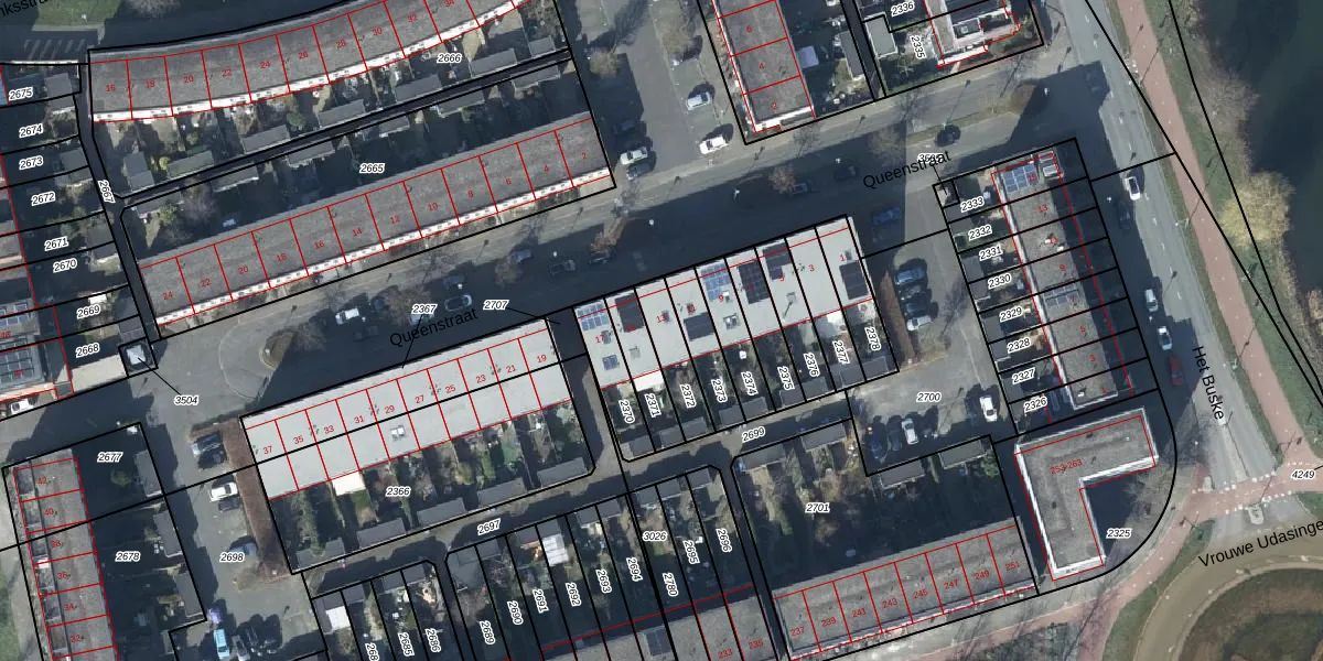 Gebruik de zoekbalk of klik op een perceel voor informatie over de adressen binnen dit perceel.