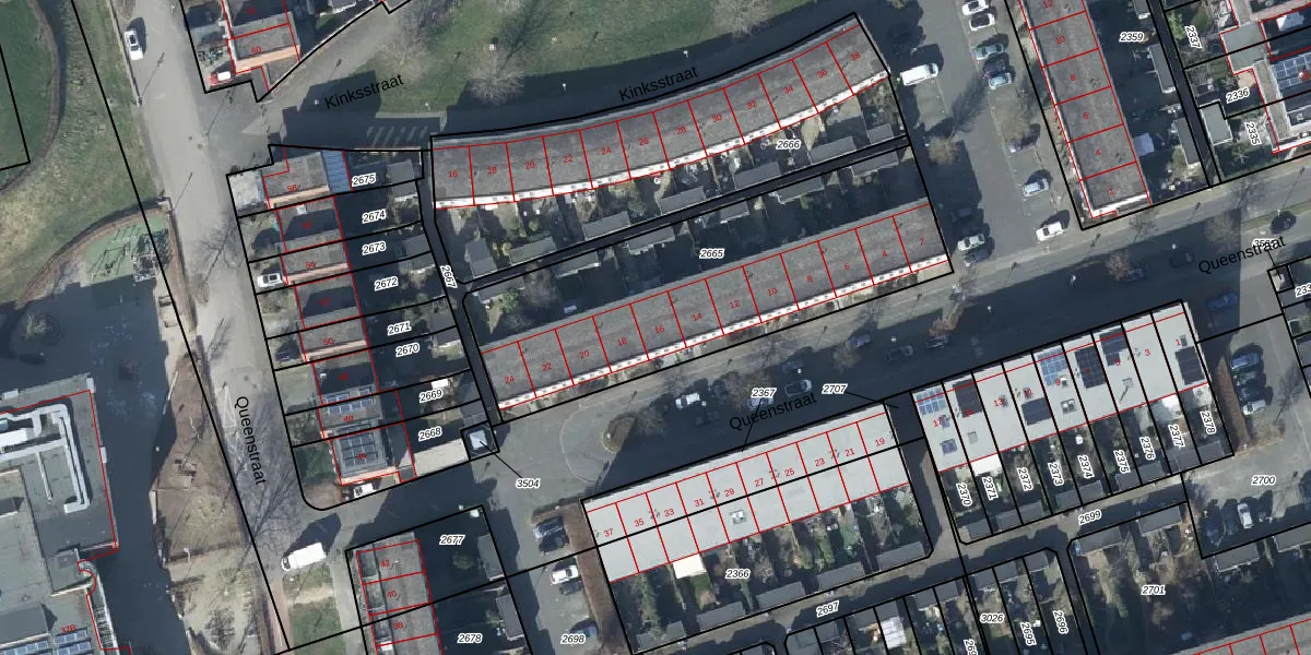 Queenstraat 16 is gelegen op kadastraal perceel LEN00A2665. Deze kadastrale aanduiding is uniek en wordt gebruikt door het Kadaster om eigendomsrechten en andere zakelijke rechten vast te leggen. Het perceel maakt onderdeel uit van de kadastrale gemeente Lent.