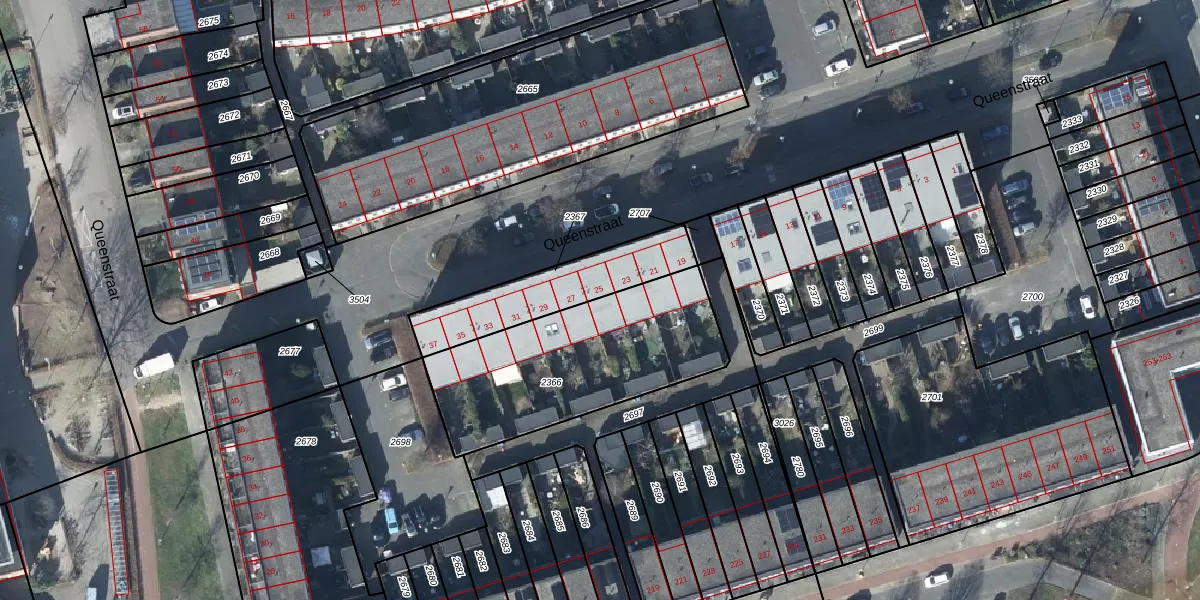 Queenstraat 25 is gelegen op kadastraal perceel LEN00A2366. Deze kadastrale aanduiding is uniek en wordt gebruikt door het Kadaster om eigendomsrechten en andere zakelijke rechten vast te leggen. Het perceel maakt onderdeel uit van de kadastrale gemeente Lent.