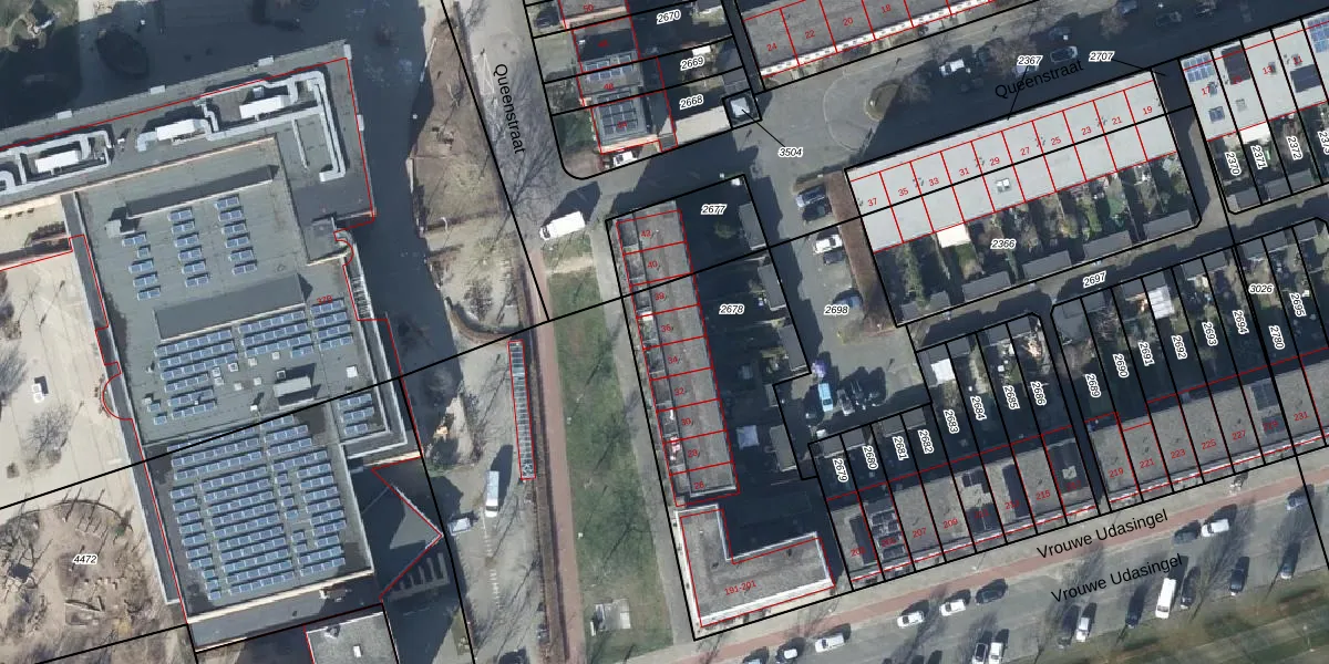 Queenstraat 36 is gelegen op kadastraal perceel LEN00A2678. Deze kadastrale aanduiding is uniek en wordt gebruikt door het Kadaster om eigendomsrechten en andere zakelijke rechten vast te leggen. Het perceel maakt onderdeel uit van de kadastrale gemeente Lent.