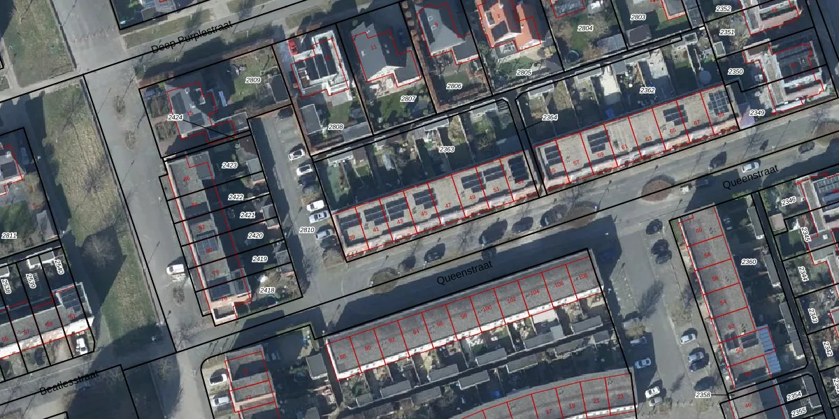 Het perceel waarop Queenstraat 45 staat heeft een oppervlakte van 1214 m². Dit is een zeer groot perceel. De perceeloppervlakte wordt geregistreerd door het Kadaster. Gedetailleerde informatie over de maten van dit perceel kunt u vinden in het rapport Kadastrale kaart met maatvoering van Queenstraat 45.