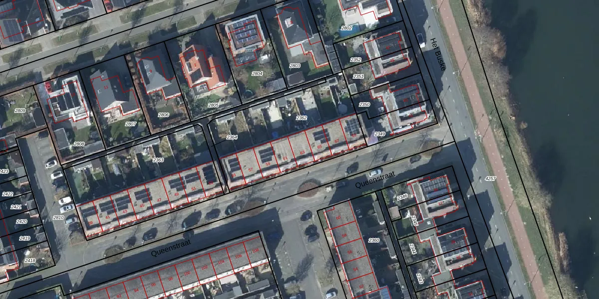 Queenstraat 63 is gelegen op kadastraal perceel LEN00A2362. Deze kadastrale aanduiding is uniek en wordt gebruikt door het Kadaster om eigendomsrechten en andere zakelijke rechten vast te leggen. Het perceel maakt onderdeel uit van de kadastrale gemeente Lent.