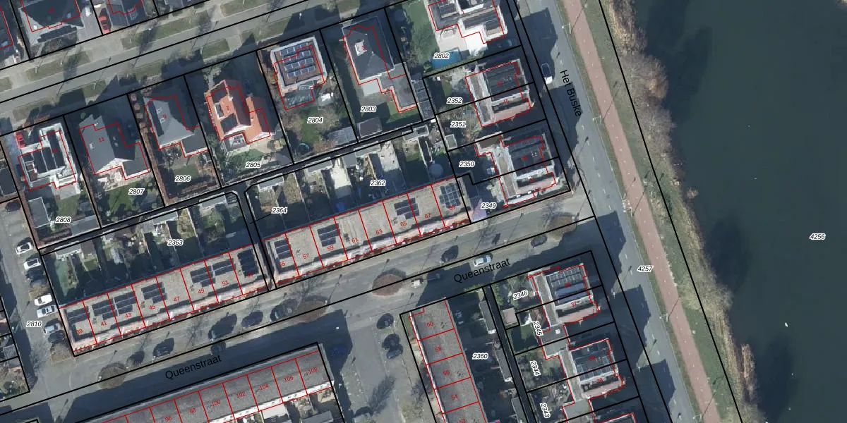 Queenstraat 67 is gelegen op kadastraal perceel LEN00A2362. Deze kadastrale aanduiding is uniek en wordt gebruikt door het Kadaster om eigendomsrechten en andere zakelijke rechten vast te leggen. Het perceel maakt onderdeel uit van de kadastrale gemeente Lent.