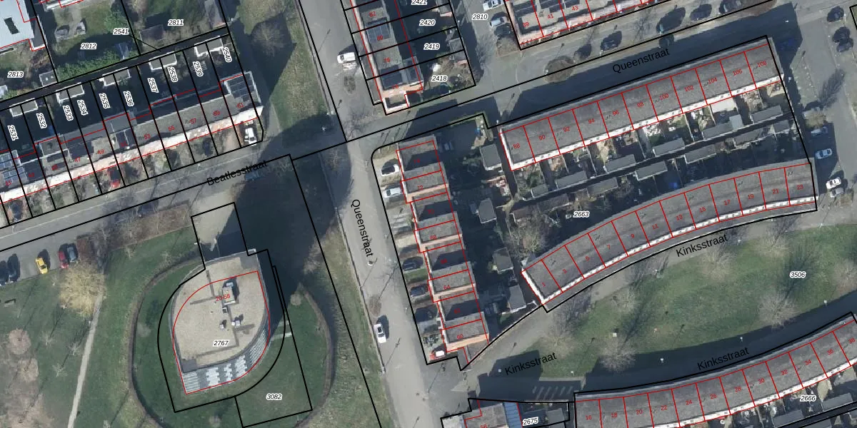 Het perceel waarop Queenstraat 70 staat heeft een oppervlakte van 4314 m². Dit is een zeer groot perceel. De perceeloppervlakte wordt geregistreerd door het Kadaster. Gedetailleerde informatie over de maten van dit perceel kunt u vinden in het rapport Kadastrale kaart met maatvoering van Queenstraat 70.