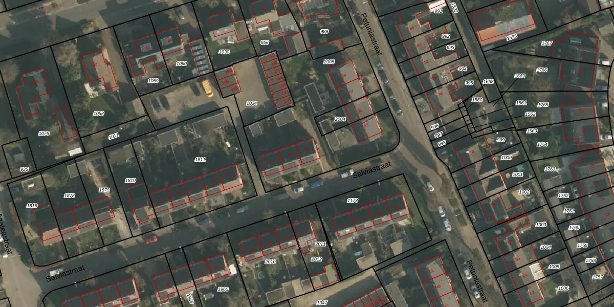 Het perceel waarop Salviastraat 25 staat heeft een oppervlakte van 1355 m². Dit is een zeer groot perceel. De perceeloppervlakte wordt geregistreerd door het Kadaster. Gedetailleerde informatie over de maten van dit perceel kunt u vinden in het rapport Kadastrale kaart met maatvoering van Salviastraat 25.