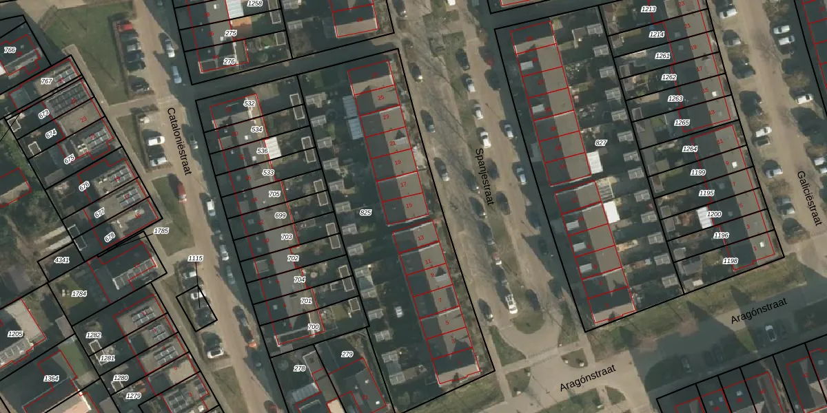 Het perceel waarop Spanjestraat 15 staat heeft een oppervlakte van 2130 m². Dit is een zeer groot perceel. De perceeloppervlakte wordt geregistreerd door het Kadaster. Gedetailleerde informatie over de maten van dit perceel kunt u vinden in het rapport Kadastrale kaart met maatvoering van Spanjestraat 15.